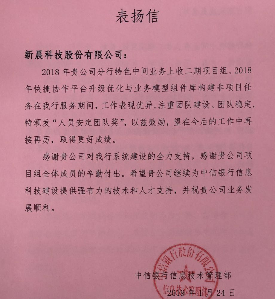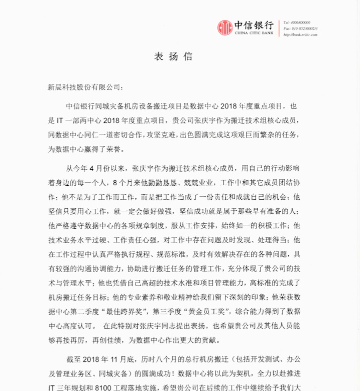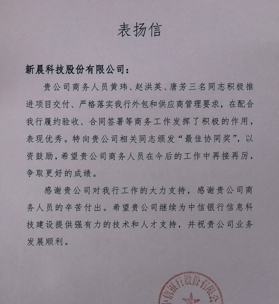 中信银行表扬信